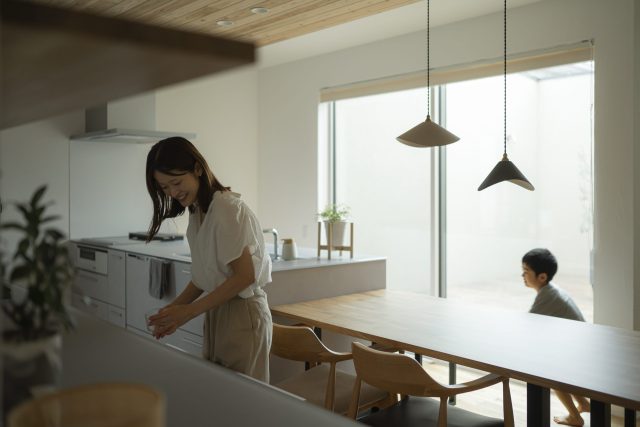 開放感あふれるアイランドキッチン - 宇城市不知火 N House 宇城市不知火 N Houseの施工事例。広々としたキッチンで、家族との会話を楽しみながら料理ができる心地よい空間。 宇城市不知火 N Houseはこちら タグ:キッチン