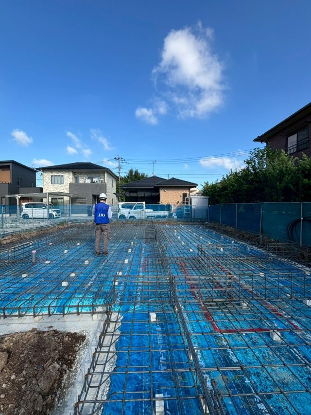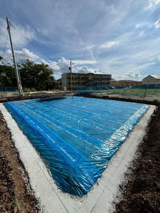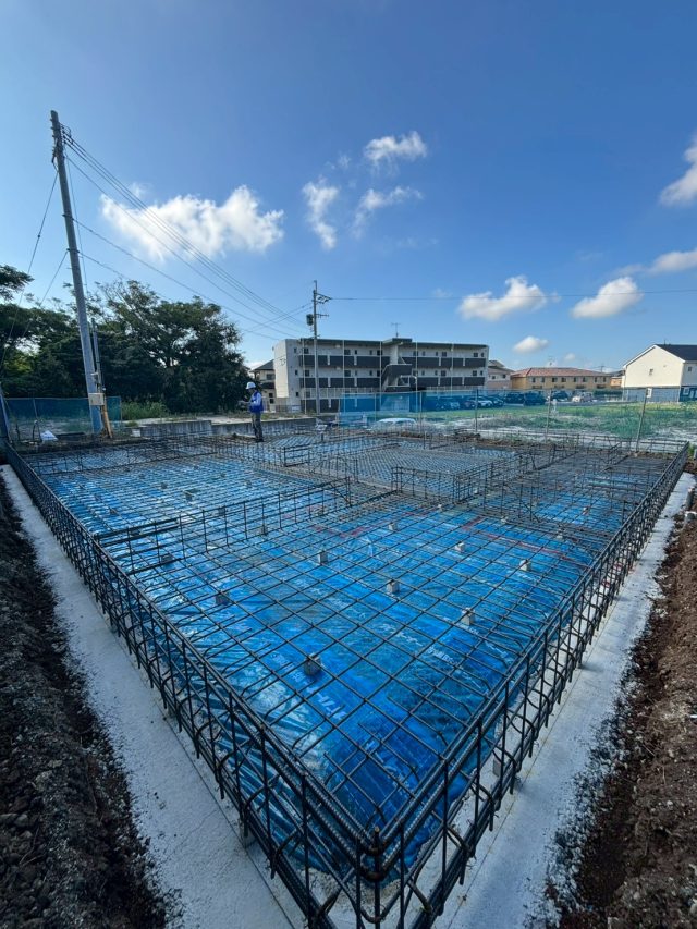 地盤改良工事が完了し、基礎工事へと進んでいます。