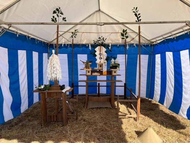 土地の四方をお祓いし、土地全体を清めていきます。