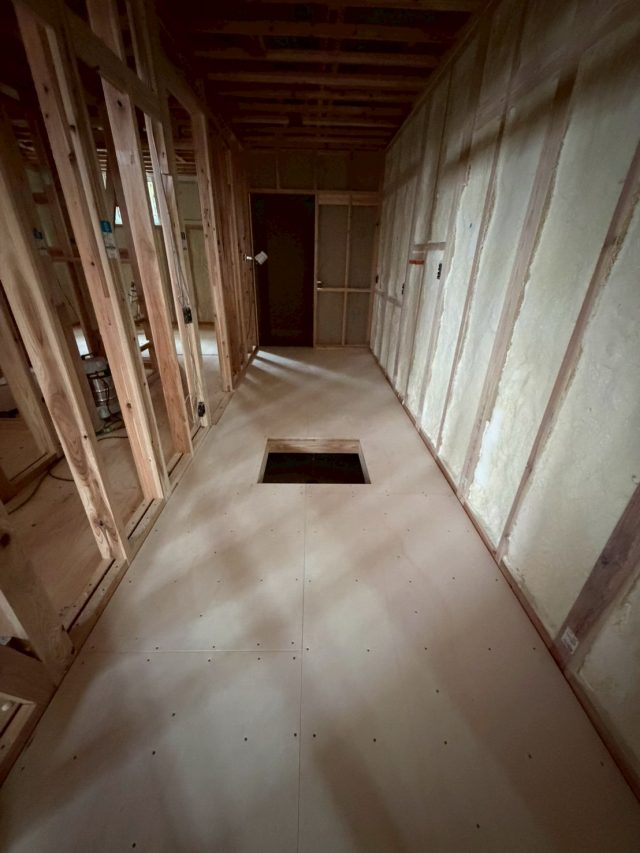 木工事が進み、断熱工事を行いました。