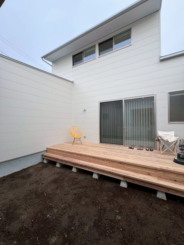 中庭にも出入りできつつ、プライベート確保のため
